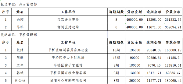 住房beat365官网下载_365betribo88_农村365今日头条主页制度是一项利国利民的保障制度和惠民政策,广大缴存者通过住房beat365官网下载_365betribo88_农村365今日头条主页贷款改善了居住条件,圆了住房梦。截止今年6月底,全市共有4.95万户职工通过住房beat365官网下载_365betribo88_农村365今日头条主页贷款购买了住房,住房beat365官网下载_365betribo88_农村365今日头条主页贷款总额达131.55亿元,贷款余额达89.38亿元。但随着住房beat365官网下载_365betribo88_农村365今日头条主页贷款额的逐年增长,贷款逾期问题比较突出。为切实控制贷款逾期率,防范住房beat365官网下载_365betribo88_农村365今日头条主页资金风险,维护社会诚信信用体系,根据《信阳市住房beat365官网下载_365betribo88_农村365今日头条主页诚信黑名单管理办法》规定,现对全市40户住房beat365官网下载_365betribo88_农村365今日头条主页贷款逾期六期以上的贷款人员予以曝光。